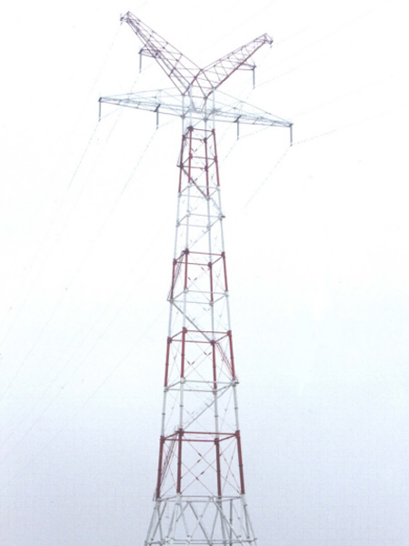 本塔為四管組合塔呼高102米總高122米,是我公司2009年加工的跨黃河的跨越塔,結(jié)構(gòu)全部為管連接,帶有平臺,走道。